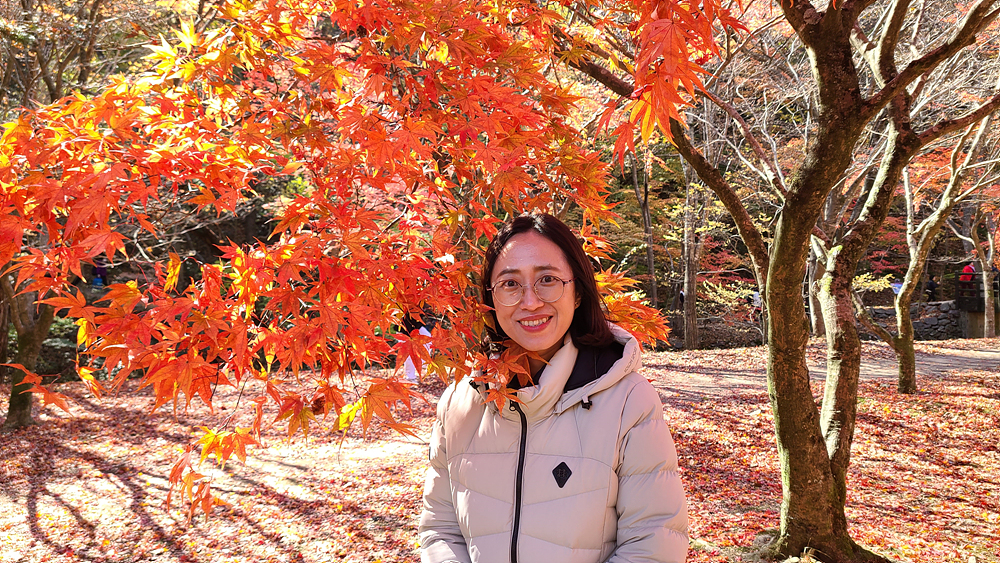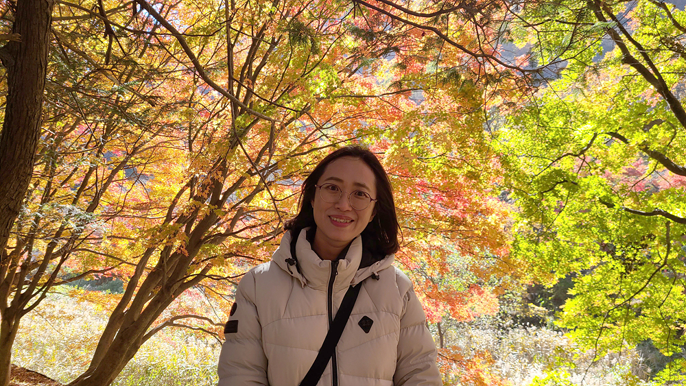 햇볕에 밝게 빛나는 단풍이 이쁘다고